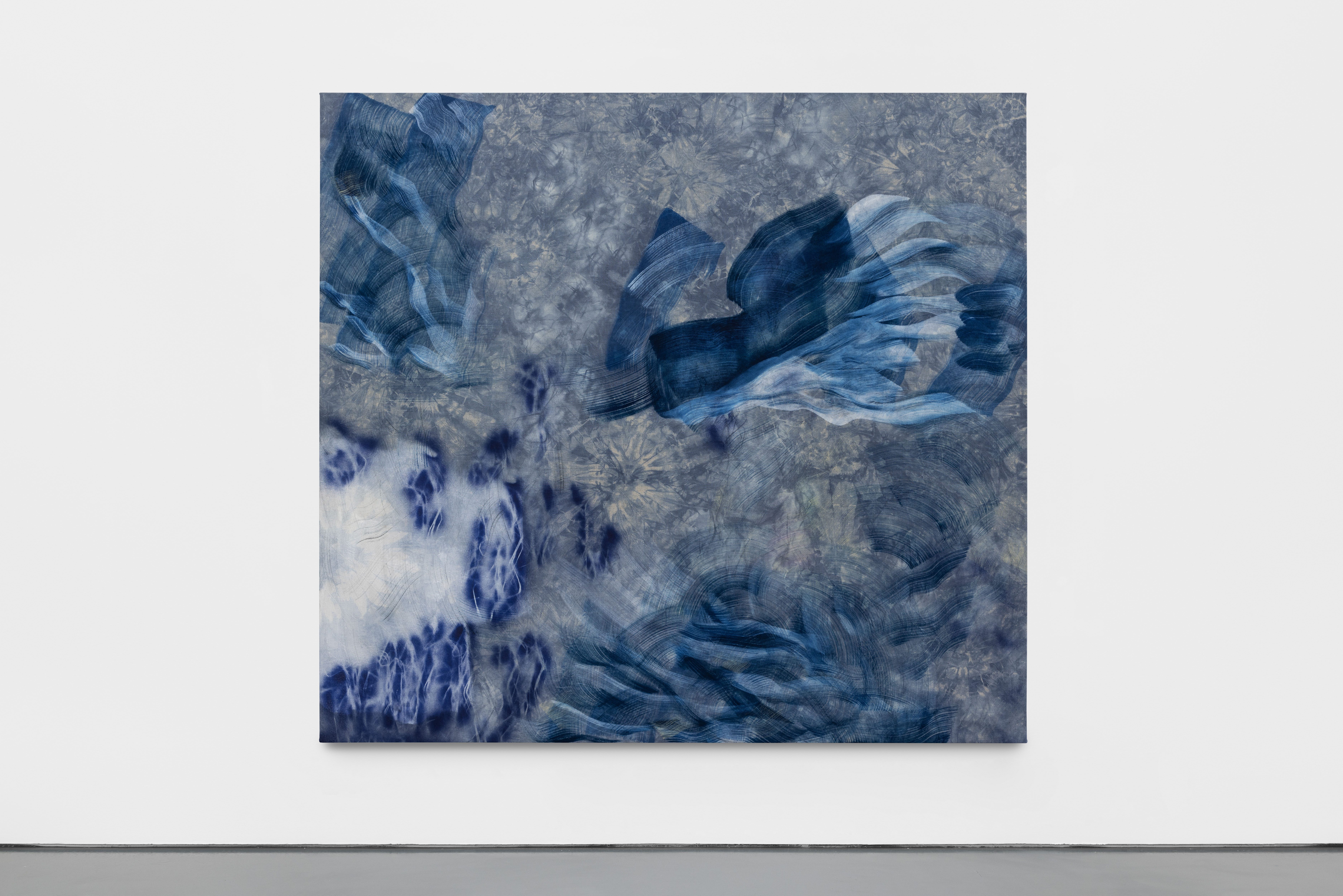 Ana Manso’s paintings and installations navigate the spaces between contamination, intersection, and exchange, attending to the infinite potential emerging in the often overlooked and quiet details of everyday life. Primarily rooted in abstraction and occasionally extending from canvas to mural, her work emerges from sensory moments with no predetermined plan, inhabiting the invisible paths where spontaneous gesture meets perception. The transitional moments connecting action, medium, and external conditions—from the processes of stretching the canvas and preparing its base, to the painterly, intimate surrenders between creator and work—reveal each painting as a unique, unbidden force that may attract or repel the artist’s gestures at any moment. Through the layering of acrylic and oil paint with other mediums of lesser artistic notability (such as tie-dye, stencils, and stamps), the fixed pictorial orientation dissolves amid cycles of creation, mirroring the mysticism of transformation and reinvention found in the natural world—tides, moons, seasons, and the artist's own femininity. Manso’s slow, ritualistic processes (also born from her experimentations with ceramic and other materials), honor the specific rhythms of each entity, imbuing her paintings with a freedom that allow for movement in the different colors, formats, and temporalities of endless plastic possibility.